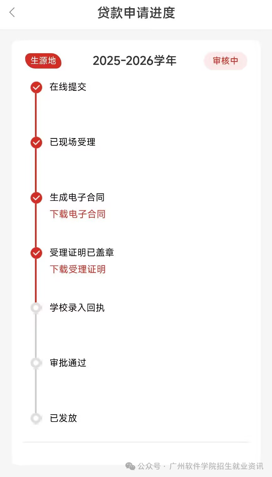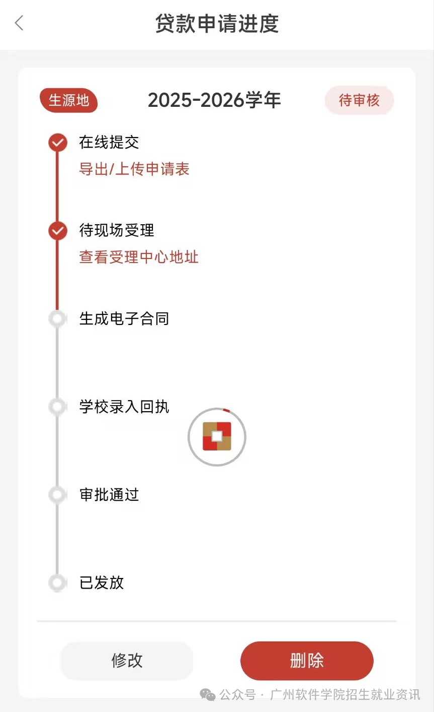国家开发银行会给贷款学生名单到学校,线下办理完拿到回执 开学交给学校, 在8月19日前办理的,8月20日学校会根据国开行系统学生贷款的金额抵扣相等的学费。8月20日(含20日)之后办理生源地贷款的学生,需持贷款《受理证明》入学时,到所录取的二级学院进行相应的办理相应额度的学费抵扣。
