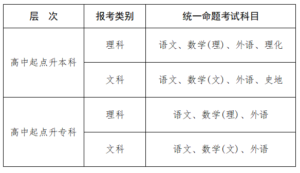 (二)录取批次。分高中起点升本科、专科起点升本科、高中起点升专科3个录取批次。