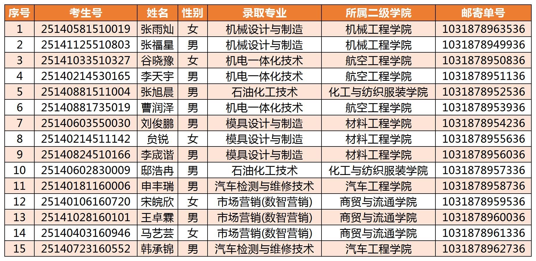 2025年我校在山西省录取物理类最低分426,历史类最低分425。请以上考生于9月11日-9月12日来校报到,录取通知书将以邮政EMS寄出,请保持预留联系方式畅通,注意查收。