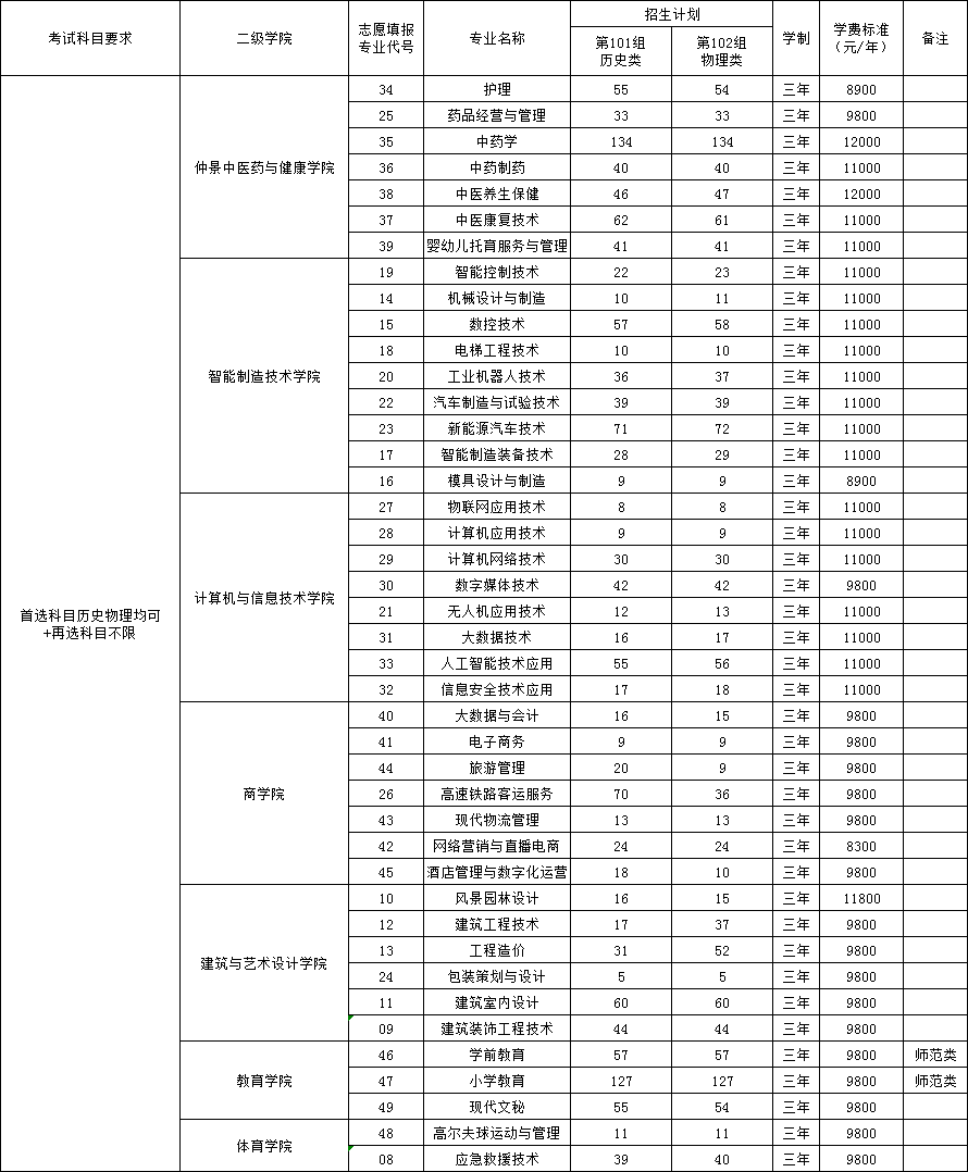 普通高职(专科)批院校专业组、招生计划及志愿填报代号