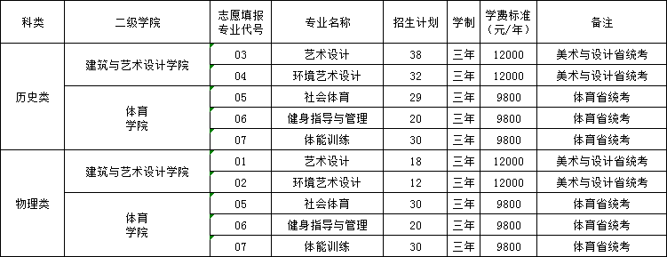 艺术、体育高职(专科)批招生计划及志愿填报代号
