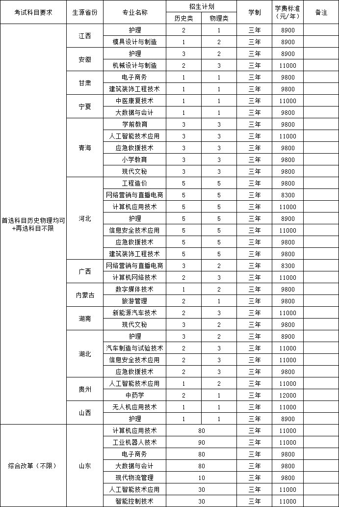 普通高职(专科)批院校招生代码及招生计划