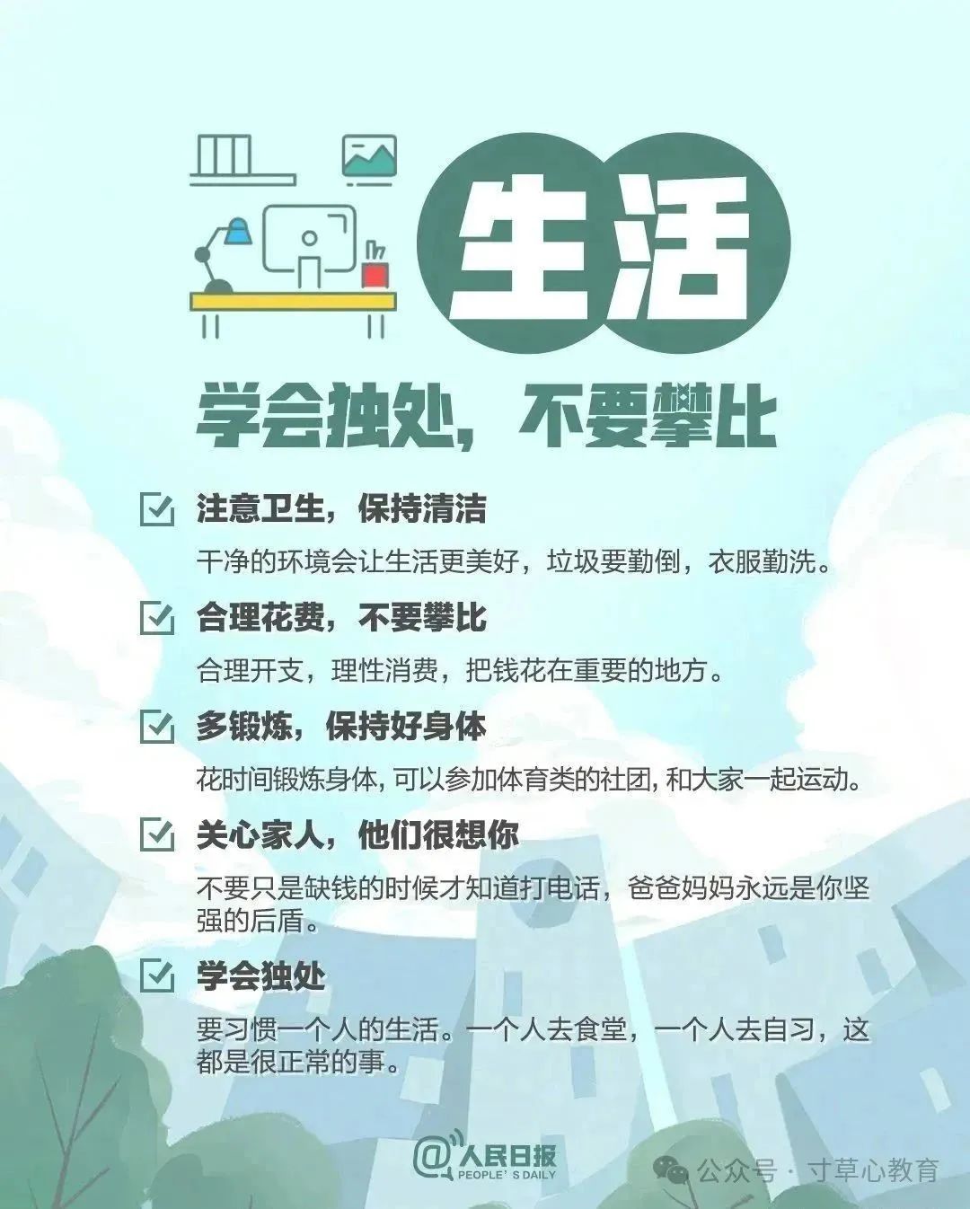 手电筒、水杯、镜子、衣架、雨伞、垃圾桶、扫帚、剪刀、针线包、打火机、透明胶、双面胶、绳子等(不一定都会用到,以防不时之需,也可到校采购)。5.床上用品