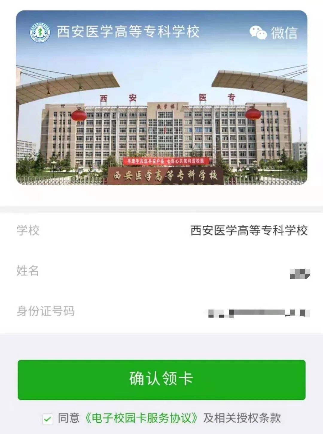 第一步:手机微信扫描左边二维码,点击领取校园卡