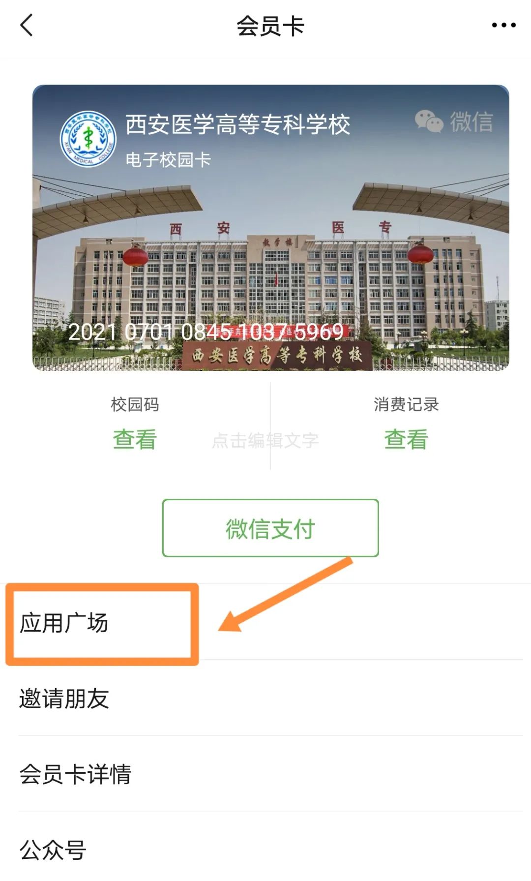 第四步:确认领卡后点击应用广场(支付宝卡包无此步骤)