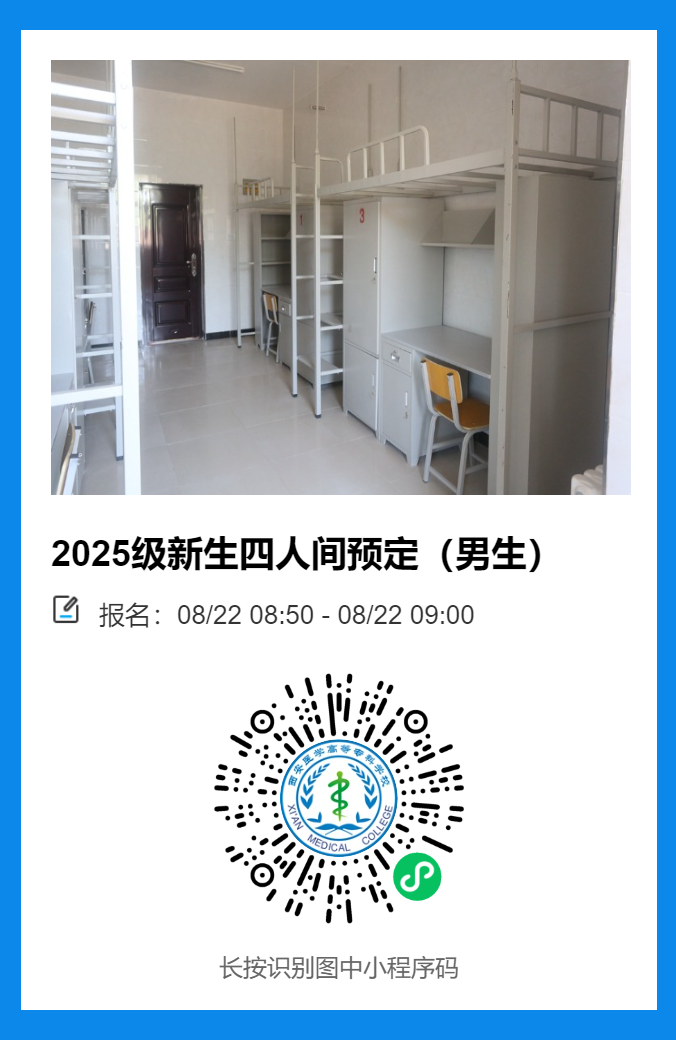 男生请于2025年8月22日(周五)上午8:50-9:00扫码预定