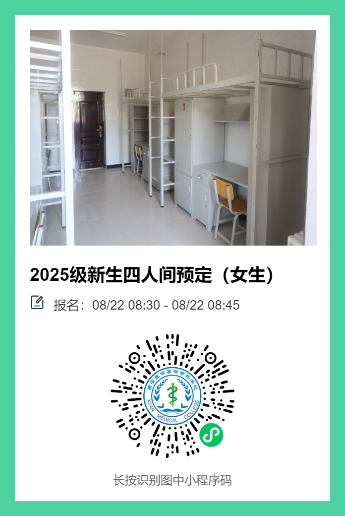 女生请于2025年8月22日(周五)上午8:30-8:45扫码预定
