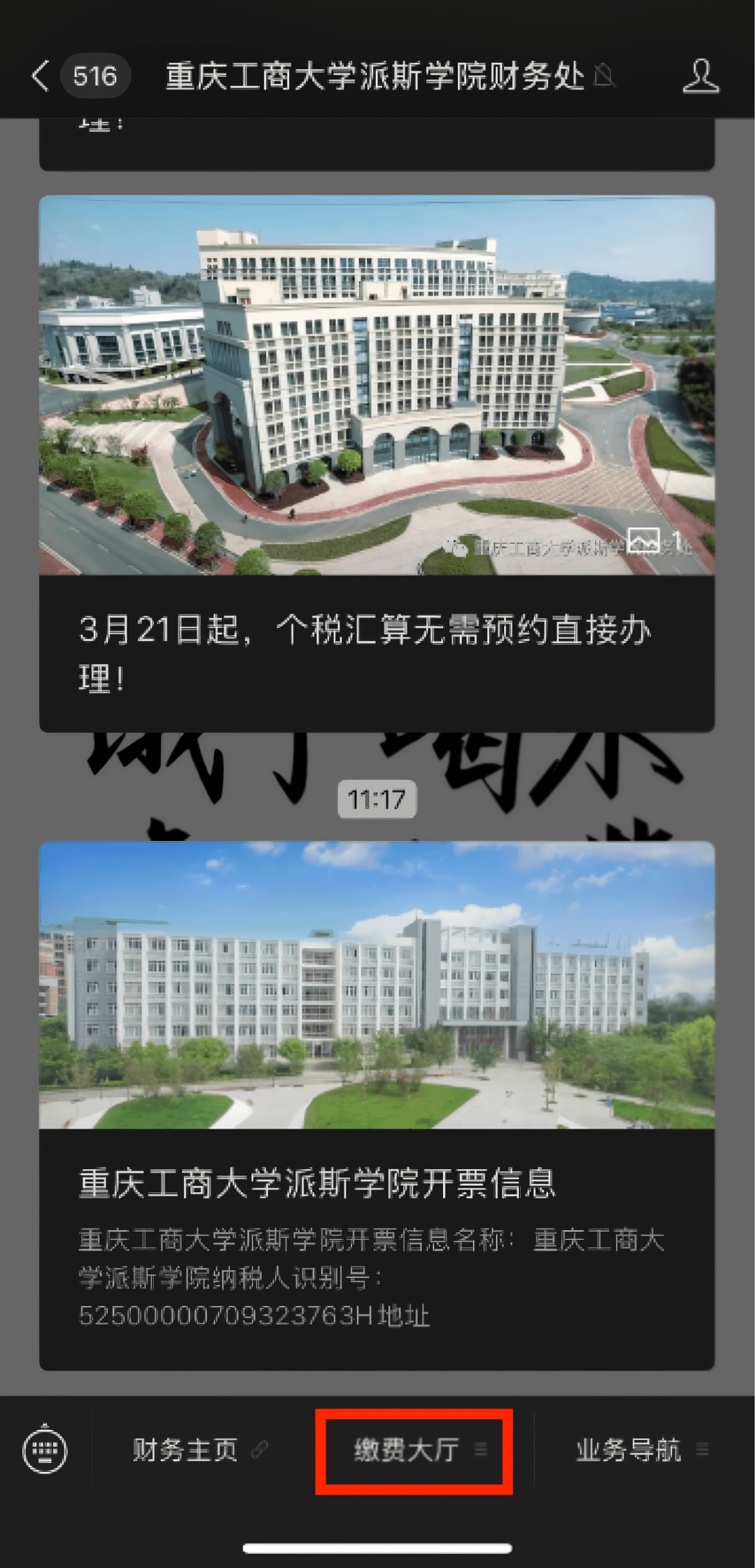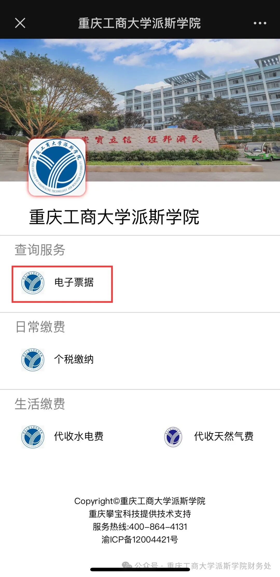 1、请关注“重庆工商大学派斯学院财务处”微信公众号;