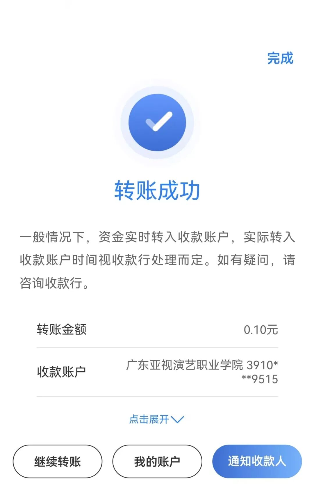 收款户名:广东亚视演艺职业学院