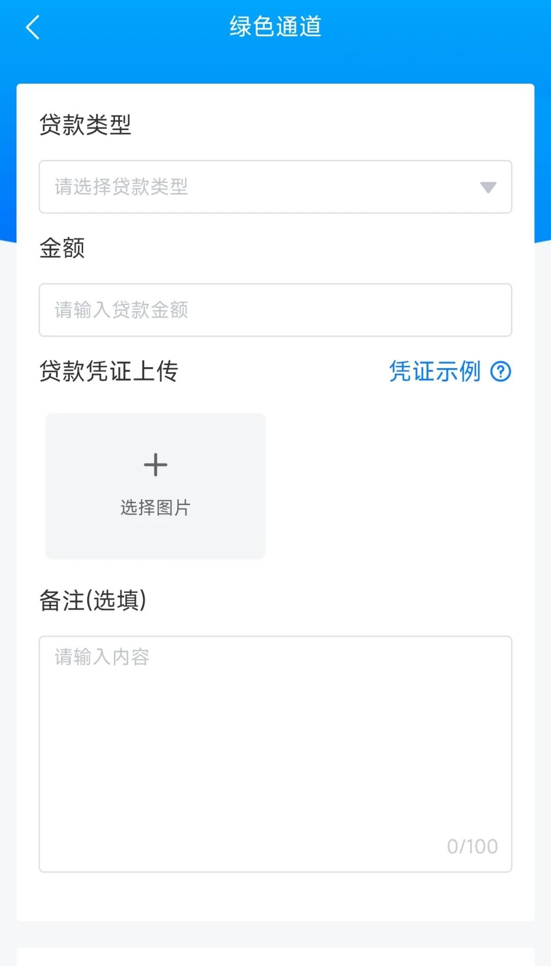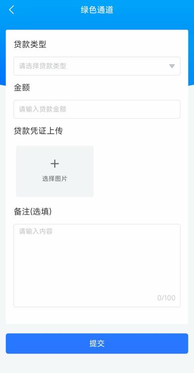 4.如果有需要可以申请贷款,点击【绿色通道-贷款凭证上传】,选择贷款类型,输入贷款金额,备注,上传贷款凭证后,点击【提交】,之后等待学校审核。