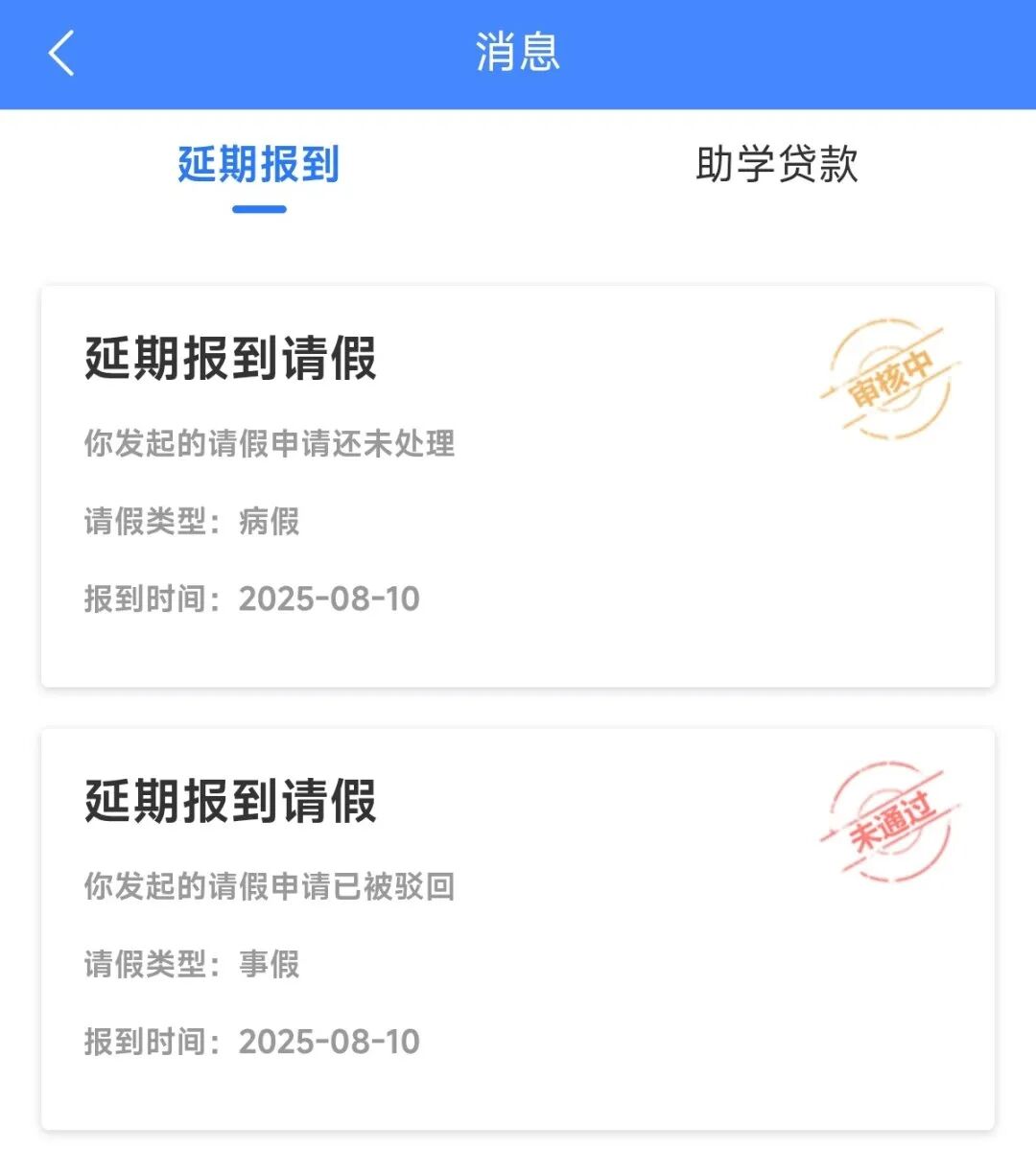 2.可查看延期报到申请