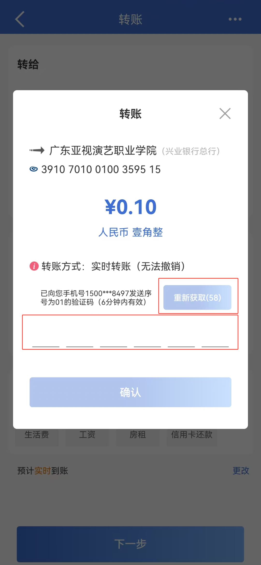 步骤4:输入“验证码”后,点击“确定”。