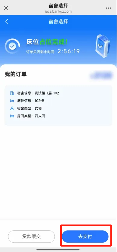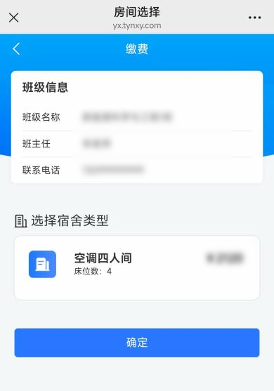 2.选择宿舍类型,点击【确定】完成床位占位
