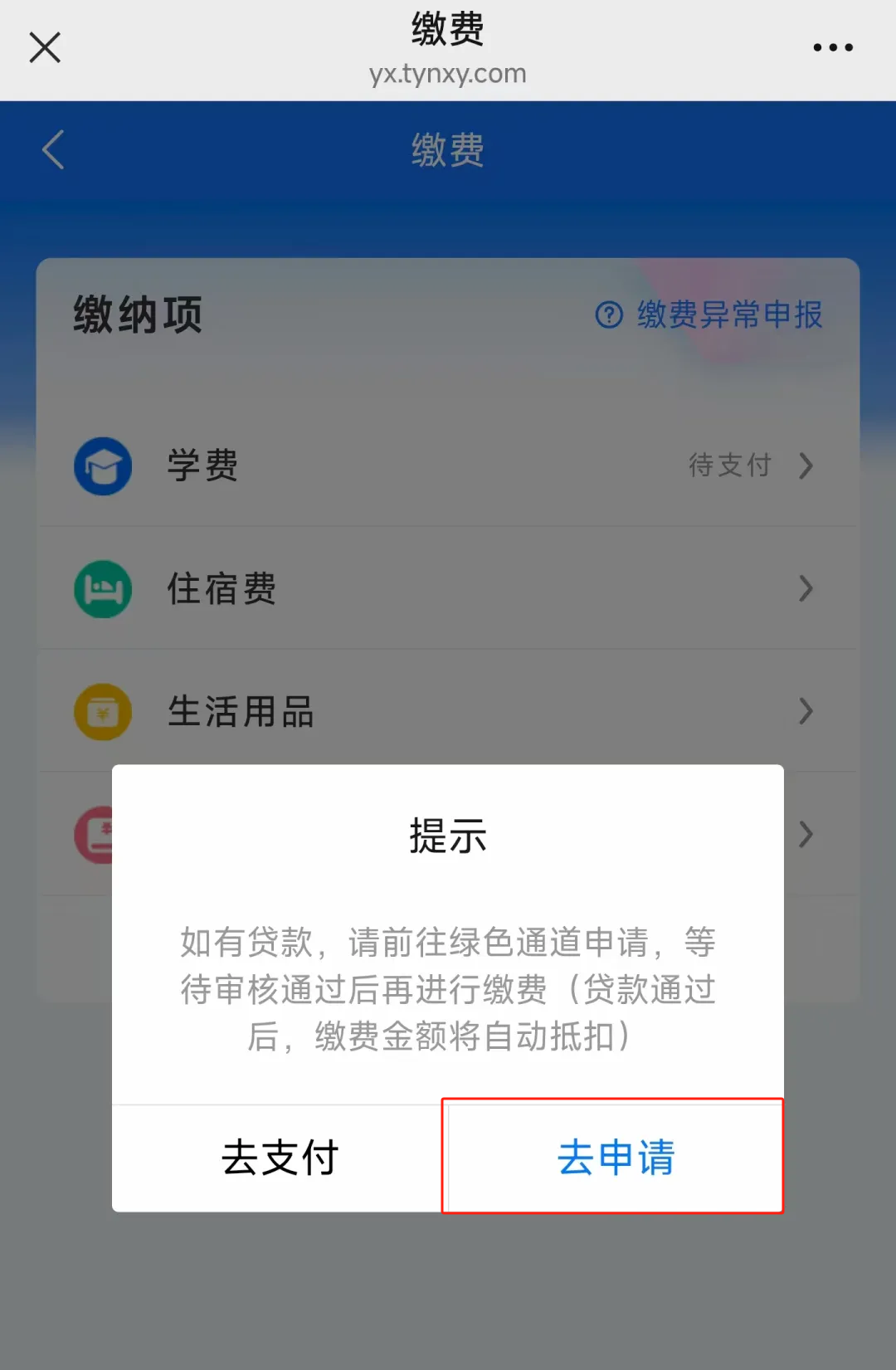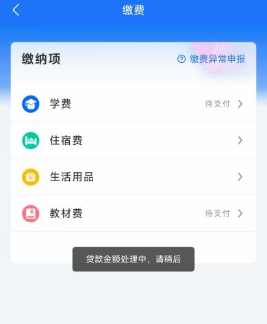 2.点击【学费】,之后会弹出是否有贷款申请的提示