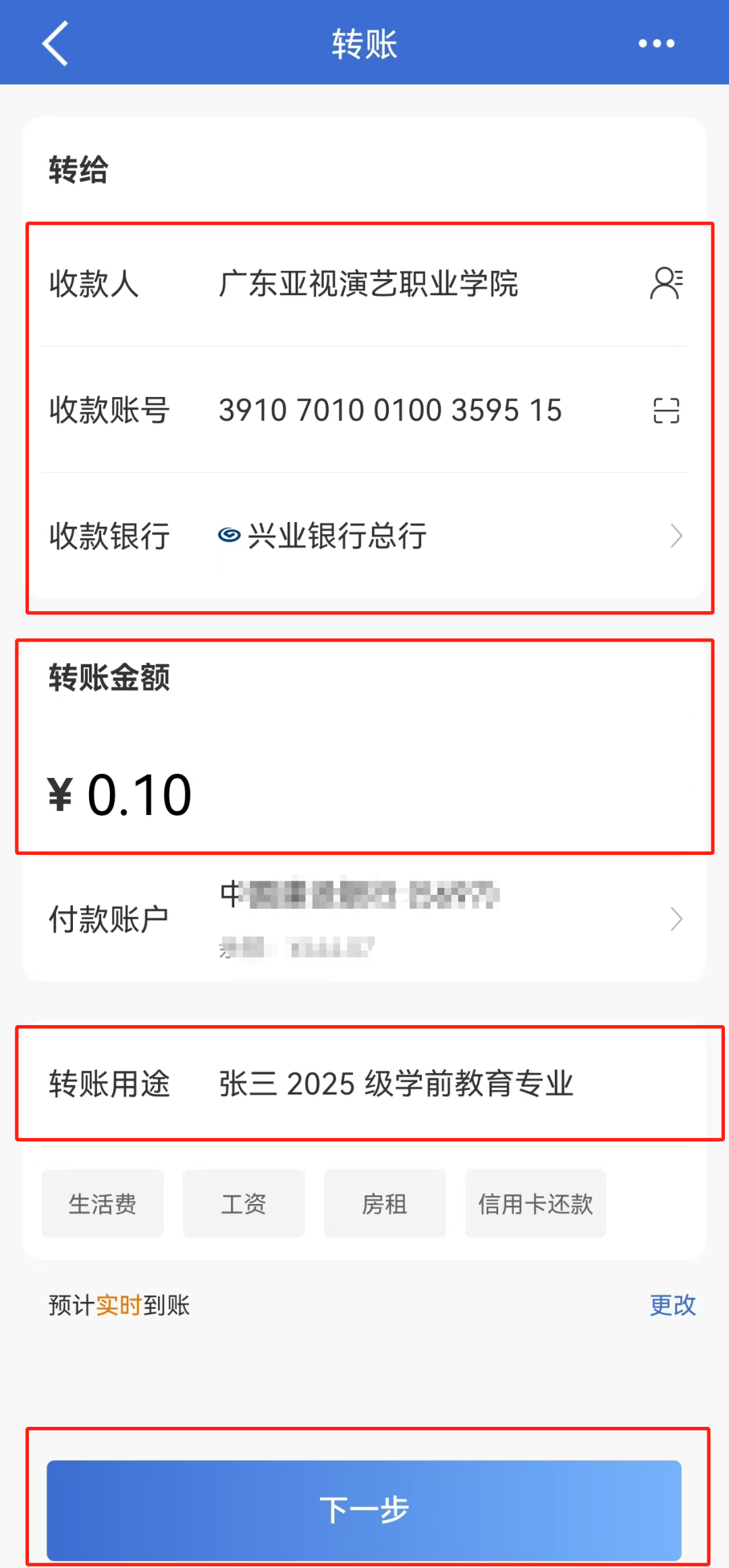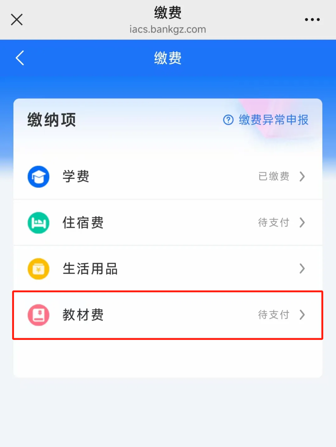 银行卡缴纳学费流程