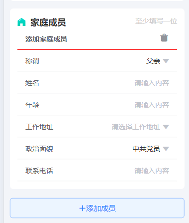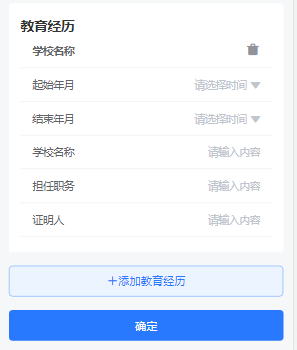 3.根据要求填写家长联系方式和邮箱,并添加至少一位家庭成员和一段教育经历,最后点击【确定】完成个人信息填写。