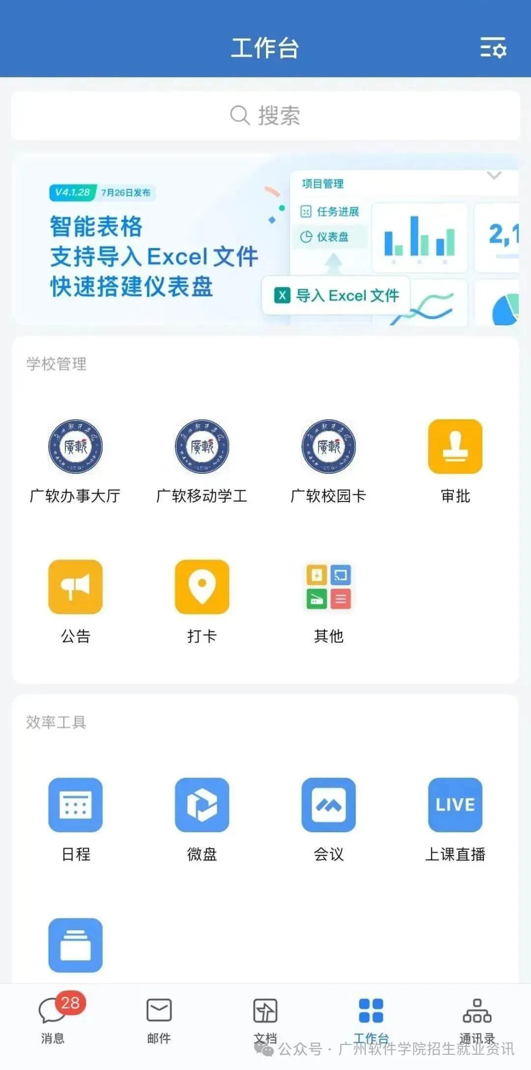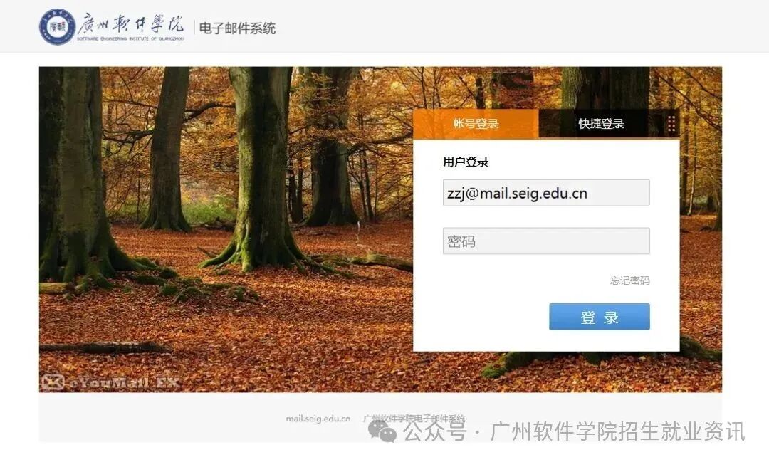 学校的各种通知,会通过广软邮箱发送。邮箱账号在信息管理系统里面可以查到,密码是身份证的后8位,登录后尽快更改密码。