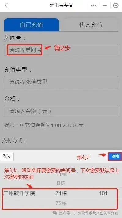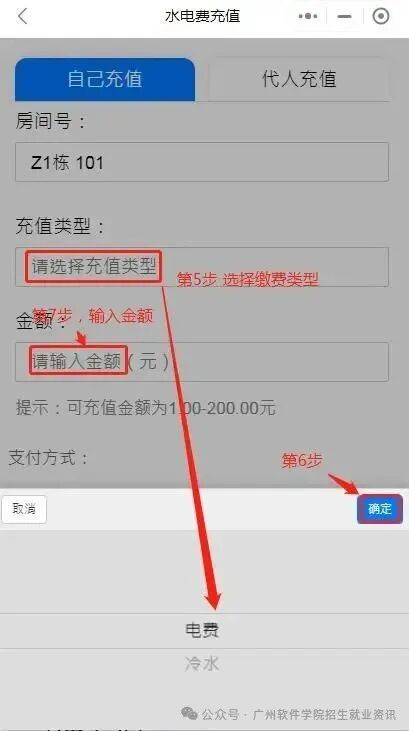 ② 水电费充值,进行宿舍电表预存缴费,冷水表预存缴费