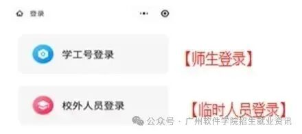 注:校内师生使用学工号+密码(密码为身份证号后6位数字)登录,校外人员使用手机号码+短信验证码