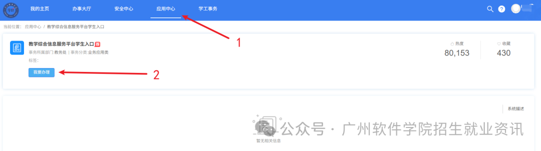 可在企业微信-应用中心-教学综合信息服务平台学生入口点击办理即可进入。教学综合信息服务平台可查看课程表、考试成绩、选课等等。