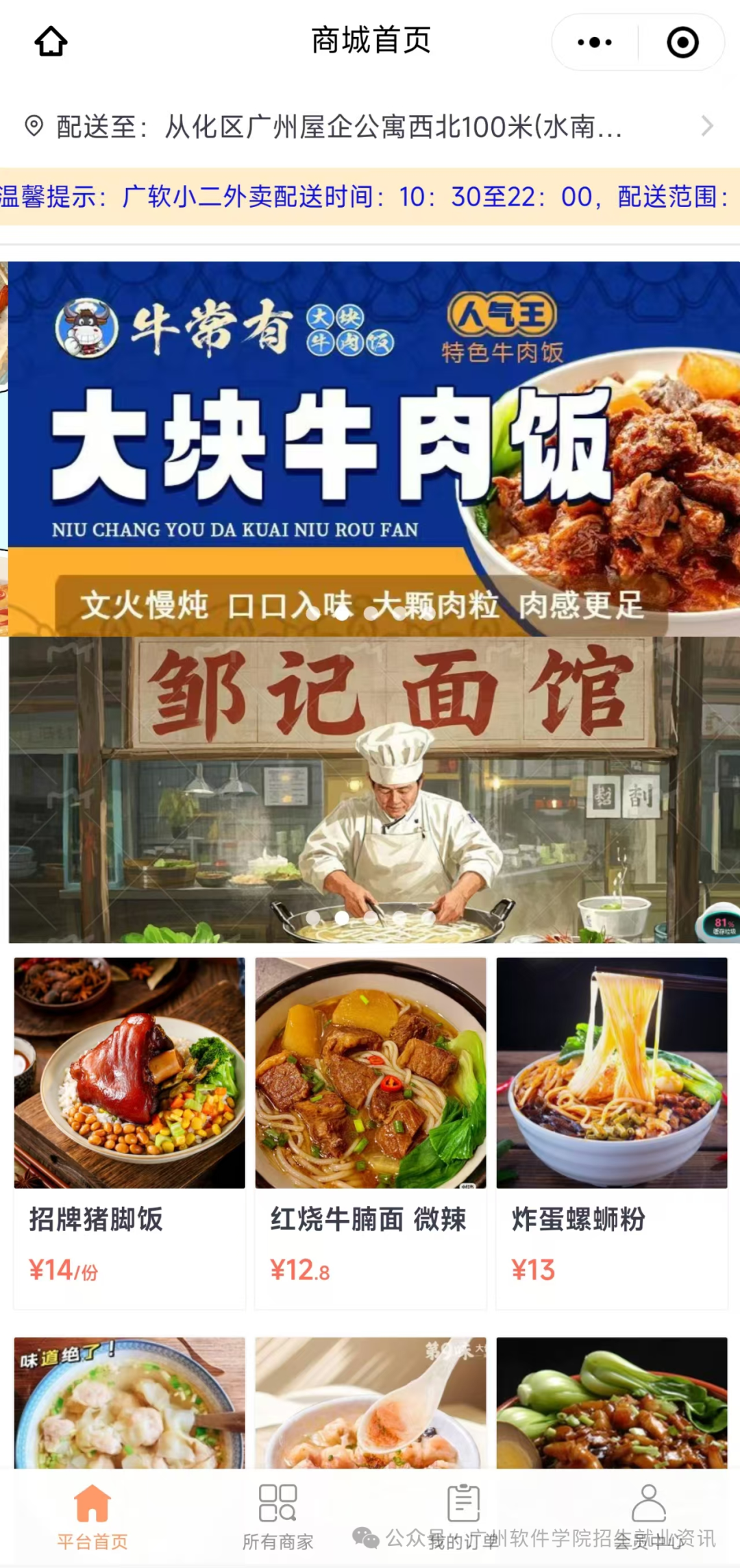 通过该平台,可以轻松订购校内餐饮服务,享受两种便捷的取餐方式:一是到店自提,二是选择配送至校园内指定的取餐点。