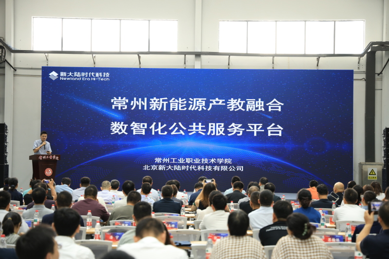 会议期间,多项重磅成果集中亮相。中科摩通(常州)智能制造股份有限公司AI专家代印唐发布AI智能设计平台暨新能源装备CAx集成系统,公司董事长赵丹和我校党委书记席海涛共同为“AI装备创新产学研用联合验证中心”揭牌。北京新大陆时代科技有限公司教育研究院院长林世舒介绍“常州新能源产教融合数智化公共服务平台”功能模块,常州教育局副局长纪忠携手常州大学副校长李忠玉、我校党委书记席海涛、常州信息职业技术学院副校长梅国英、常州机电职业技术学院副校长黄宝玲、常州纺织服装职业技术学院副校长张文明、江苏城乡建设职业学院副校长周炜炜和北京新大陆时代科技有限公司总经理陈继欣,发布“常州新能源产教融合数智化公共服务平台”。此外,福耀玻璃易道大咖培训联合中心、宁德时代后市场创新人才培养(CIEP)基地、宁德时代工程师学院等项目相继发布,“博世中德双元制‘双师型’教师联合培养中心”“博世氢能源现场工程师培训中心”“新能源汽车及核心零部件智造验证中心”正式揭牌,为产业技术迭代与人才培养提供坚实支撑。