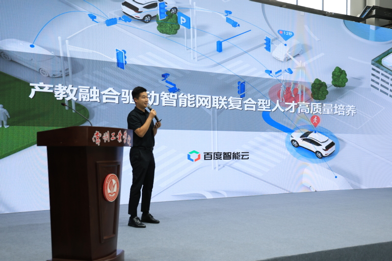 在主题报告环节,德国WMU教育集团中国职业教育首席代表李衡作《中德新能源人才培养融合创新》汇报,探讨了中德新能源人才的联合培养路径;常州星宇车灯股份有限公司模具部部长吴宏胜以《星宇智能车灯技术全景介绍》为题,展现了车灯技术的智能化革新;博世汽车服务技术(苏州)有限公司全国教育总监卢欣解析《氢能产业发展与创新人才培养》,描绘氢能领域的人才培养蓝图;北京百度网讯科技有限公司教育行业解决方案高级架构师赵国强则聚焦《产教融合驱动智能网联复合型人才高质量培养》,为产教融合培养复合型智能网联人才提供了可复制的“百度方案”。