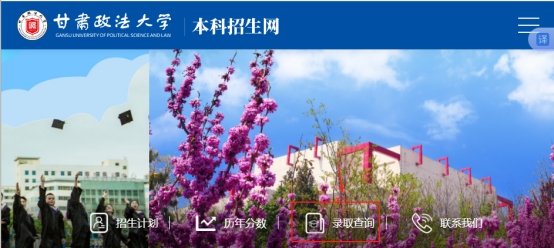 1.点击甘肃政法大学本科招生网“录取查询”,进入录取查询界面。