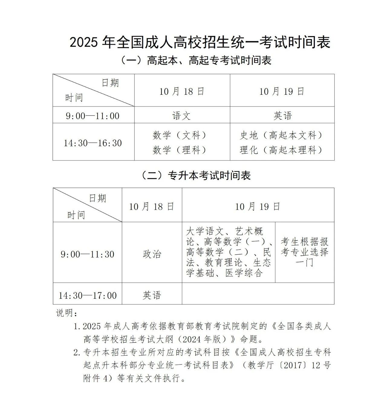 (一)2025年成人高校招生工作全部实行计算机网上录取。录取工作于12月中旬开始,12月底前结束。