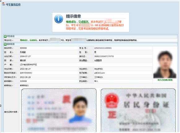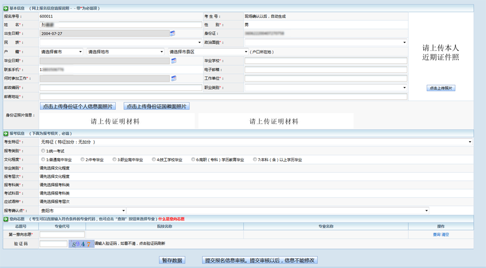 提交数据:提交报名信息到报名点审核,系统会检查数据的逻辑性,如果问题,会提示考生修改。数据提交审核以后,信息将不能修改。