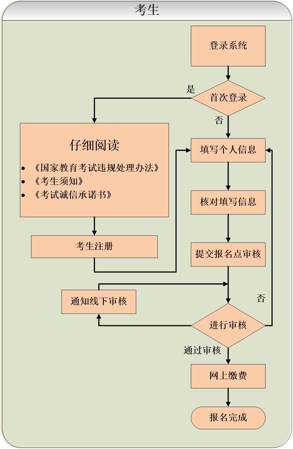 等待报名点管理员线上审核资料,如果线上审核不通过,管理员会退回资料修改。如果需要线下审核,管理员会通知考生带好相关资料,到报名点进行线下审核。