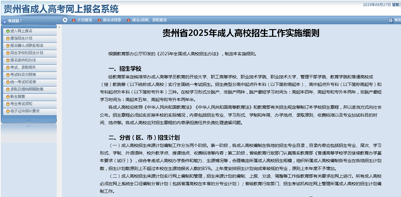 本系统为贵州省成人高考网上报名系统,为了提升系统的安全性,考生需要登录后才可以使用本系统。