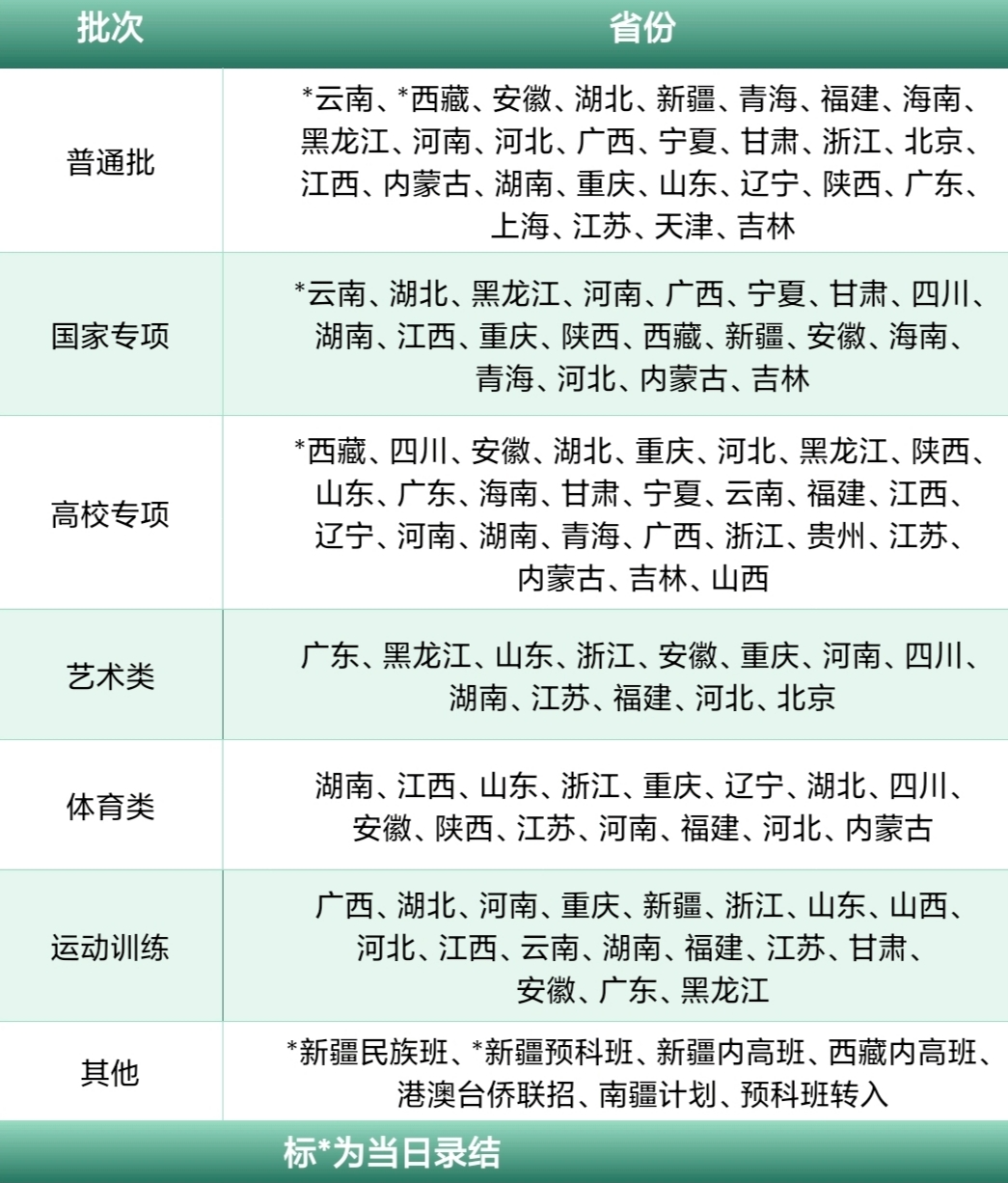 截至7月28日下午18:00,我校已完成以下省份相应批次(类型)录取工作:
