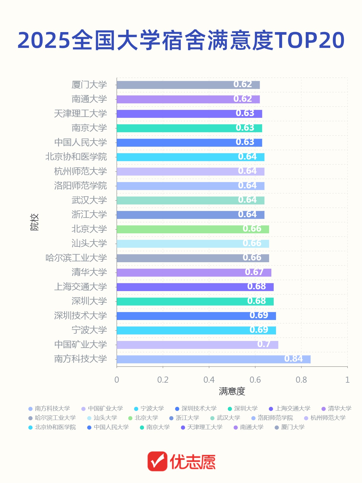 注:有效问卷数量≥100份的普通本科高校(不含本科层次高职院校)数据来源:2025软科中国大学生满意度调查