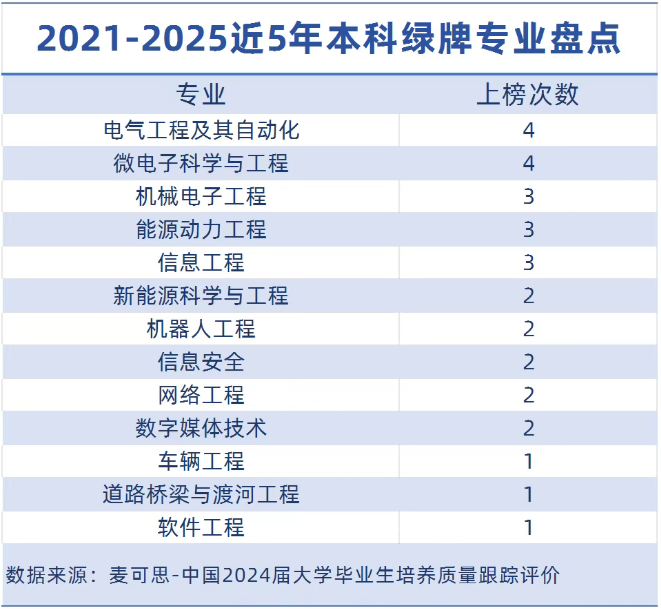那么近年来,哪些专业曾登上 “绿牌榜”?以下是优志愿整理的相关表格: