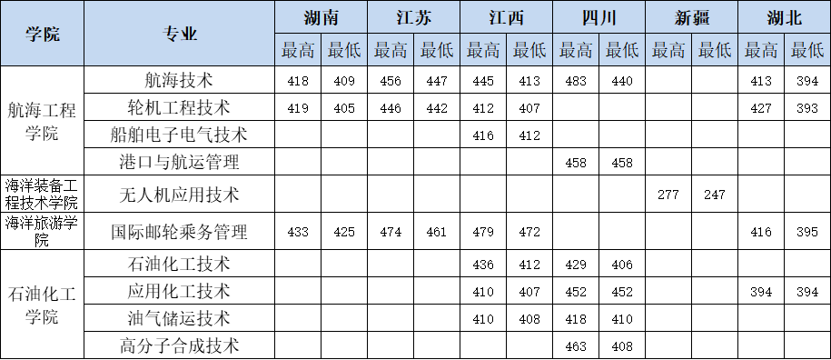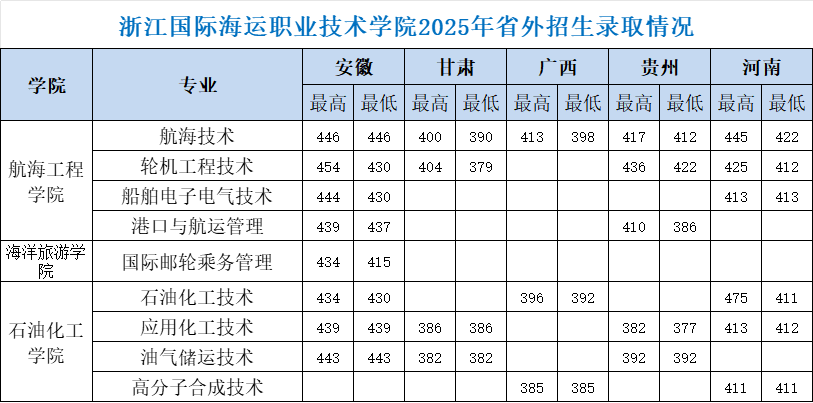 浙江国际海运职业技术学院2025年省外招生录取分数