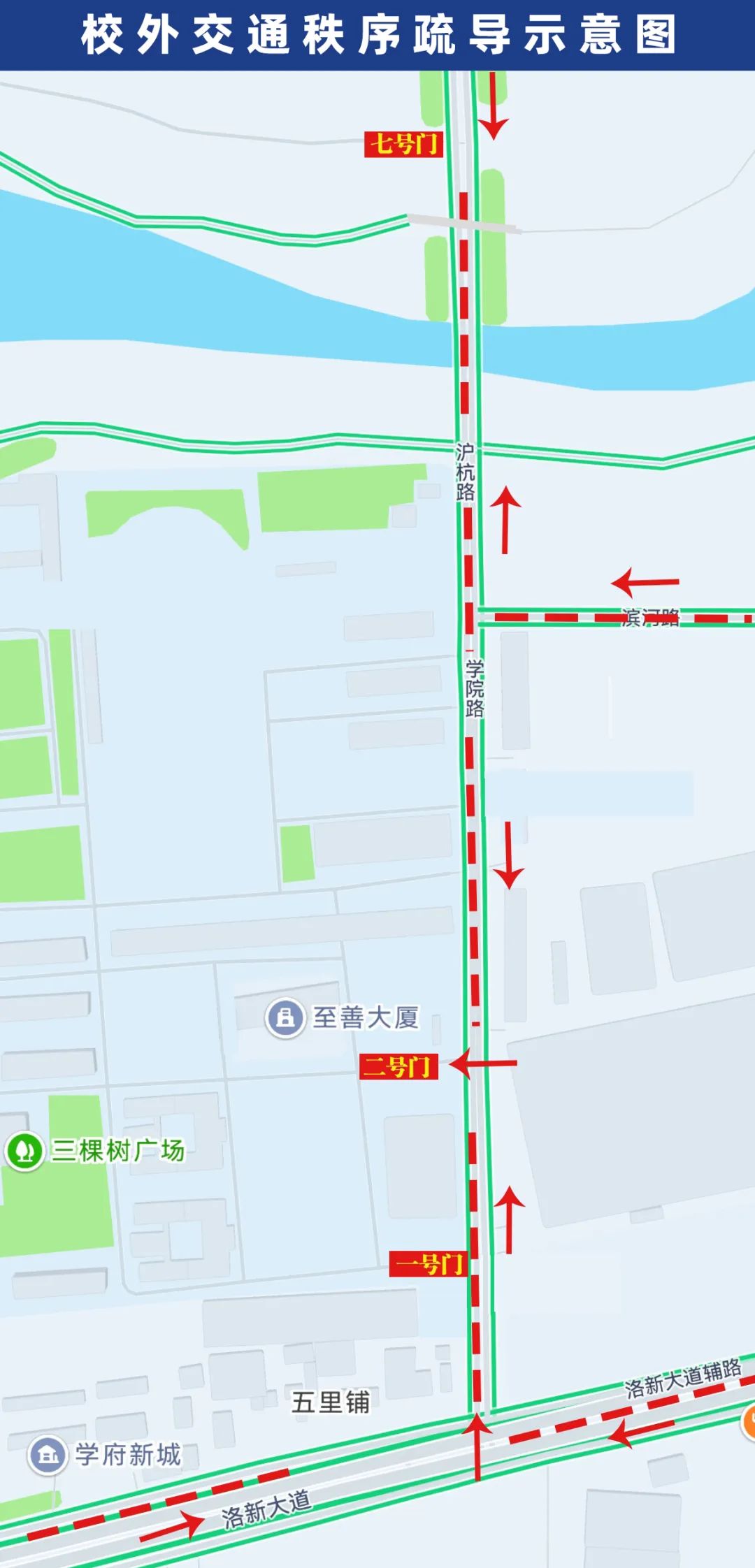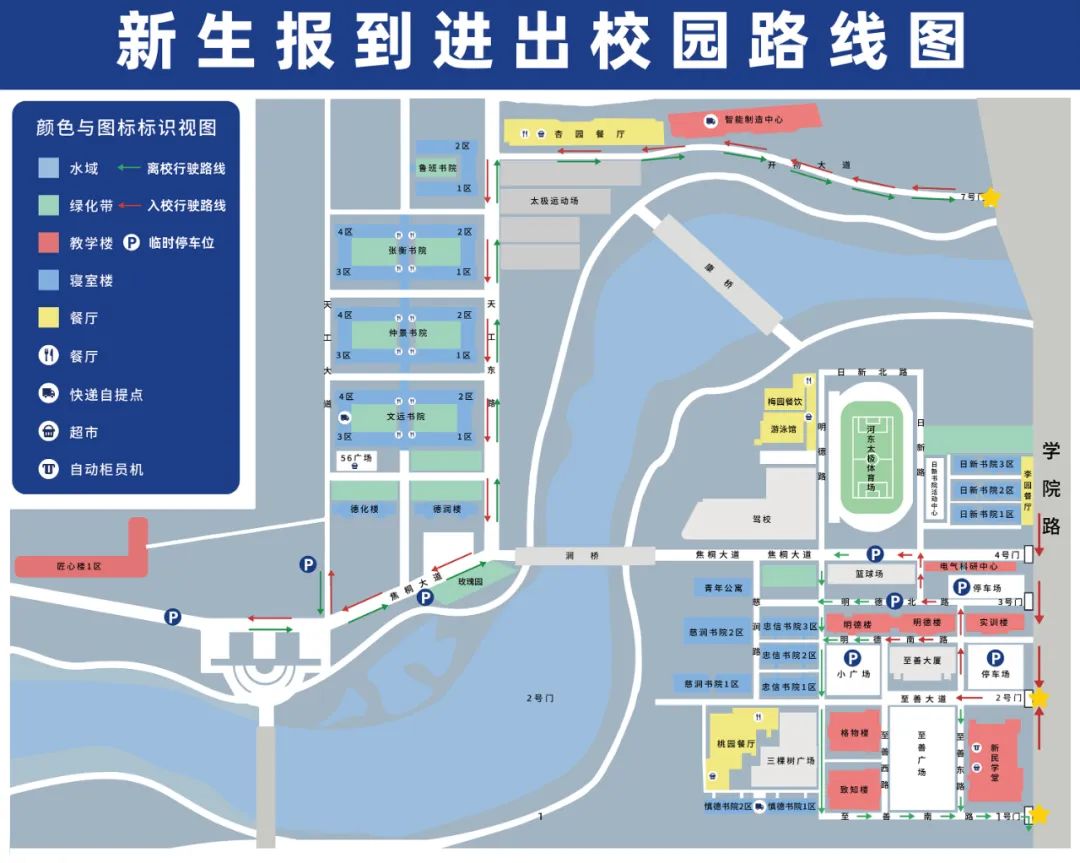 送新生的机动车离开校园时,请从学校1号门(只出不进)、7号门离开。