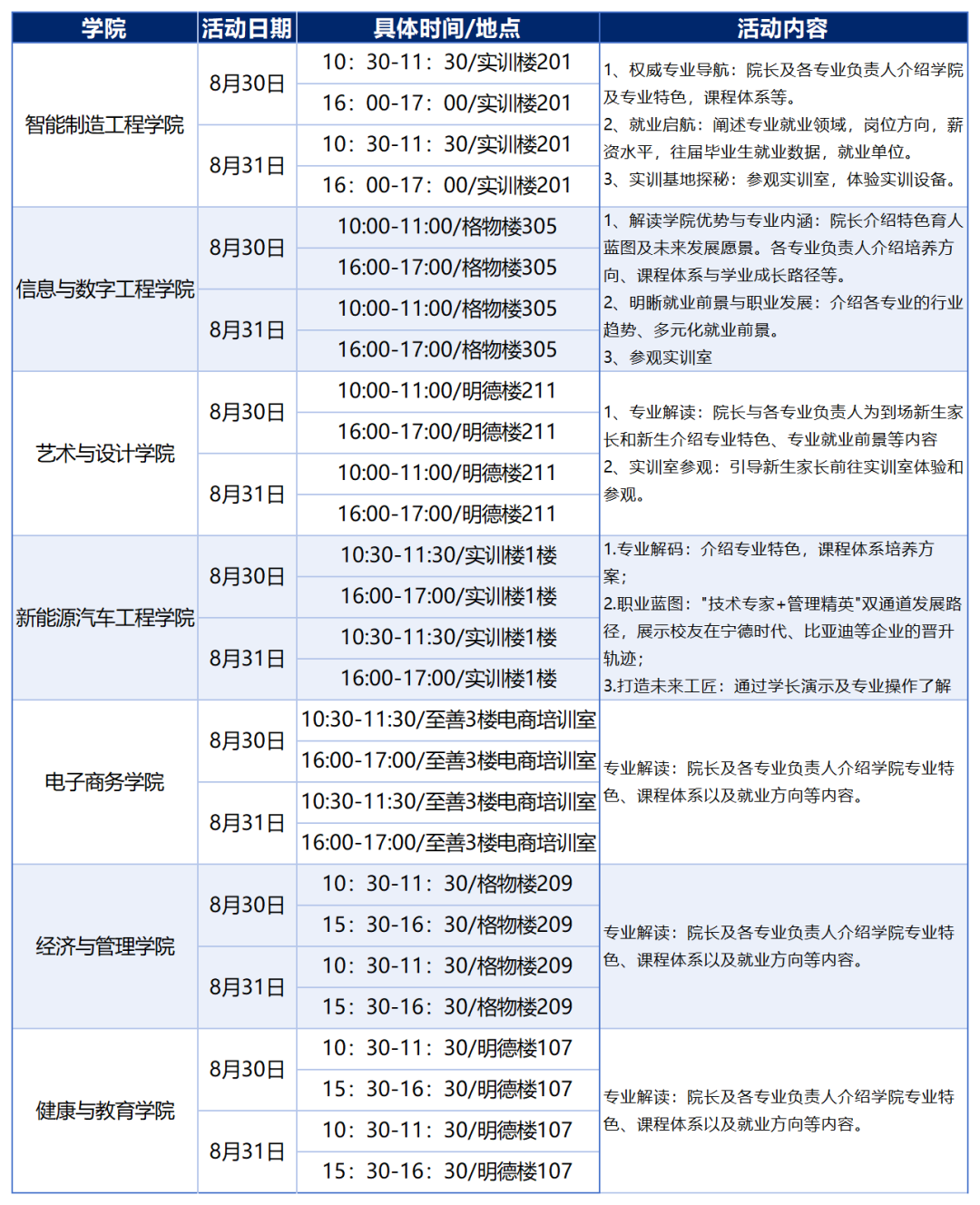 各二级学院院长、专业负责人在迎新期间,会为新生及家长介绍学院、专业特色以及就业前景等,还可以抢先参观实训环境哦~