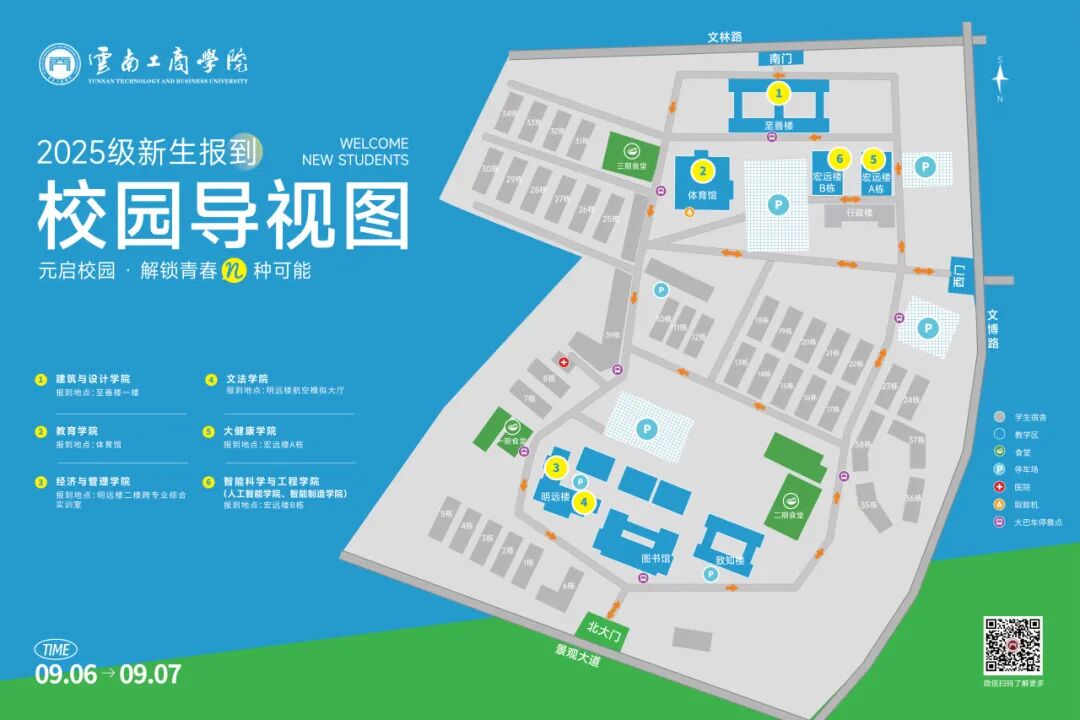 如果你与家人选择自驾来校,请直接导航至云南工商学院北门(正门)。沿途请注意安全,我们已在校园周边及校门口设置了引导标识,期盼你们平安抵达。