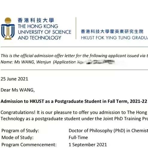 学习是没有止境的。从母校毕业后我便开始了一路深造,目前正在香港科技大学读博,主要围绕有高选择性和精确调控生物功能的有机小分子开展研究,包括阐明小分子的作用机制、利用蛋白质组学等手段,深入、系统地研究小分子的作用机制,揭示相应的靶点蛋白和信号通路等。