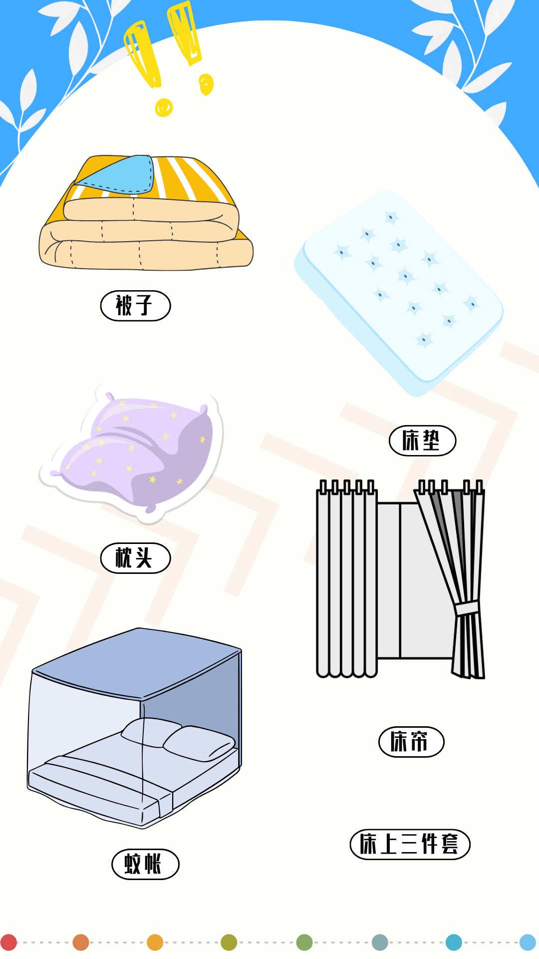 02枕头、被子、凉席、床帘、蚊帐、床上三件套等