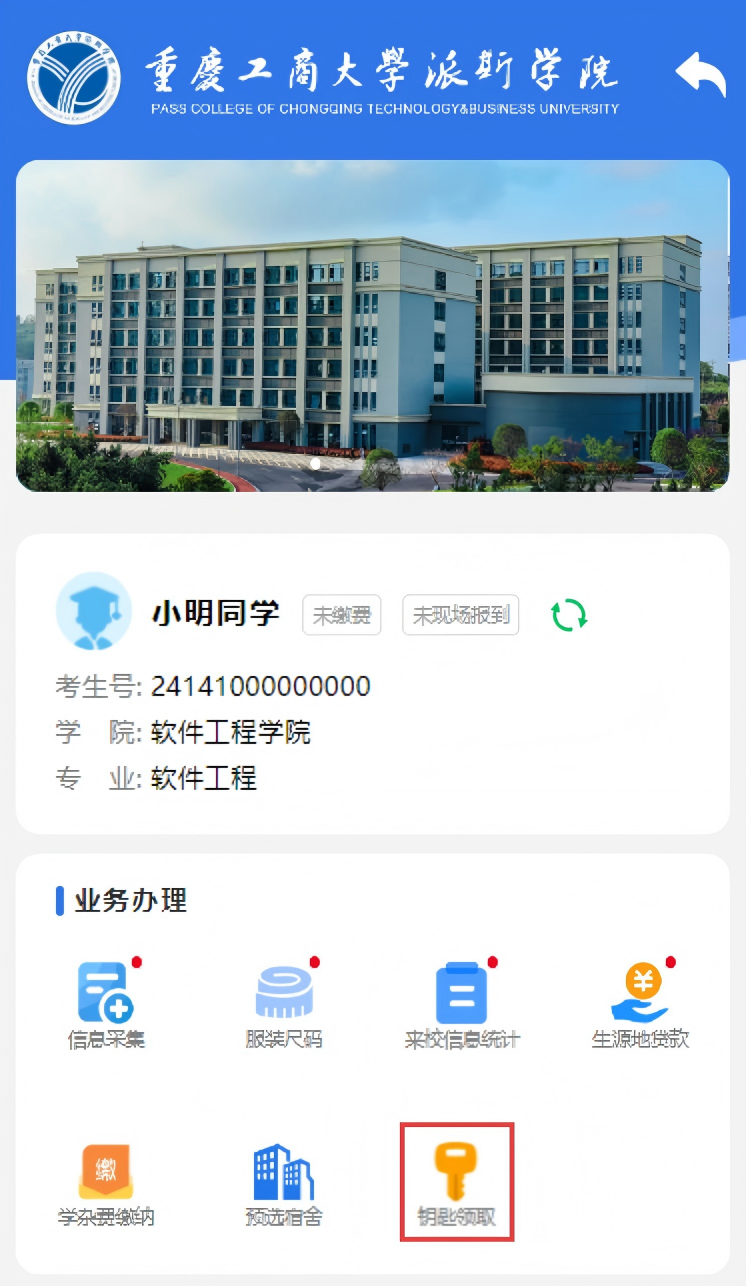 ⚠️只有完成【预选宿舍】才可领取钥匙