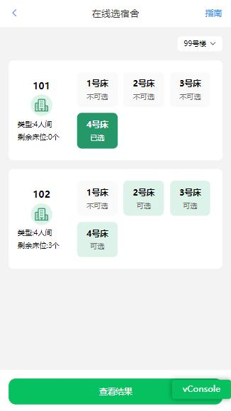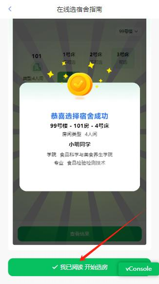● 查看选宿舍指南,页面底部点击进入选宿舍页面;