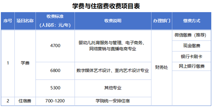 微信扫描“学院财务处二维码”缴纳学费、住宿费。