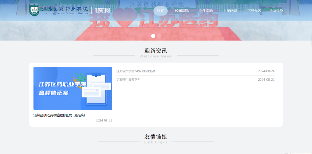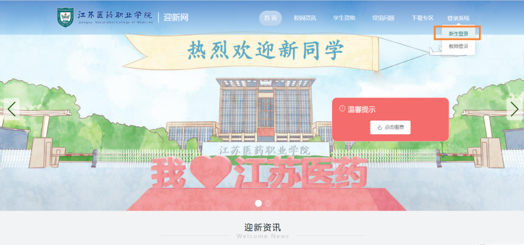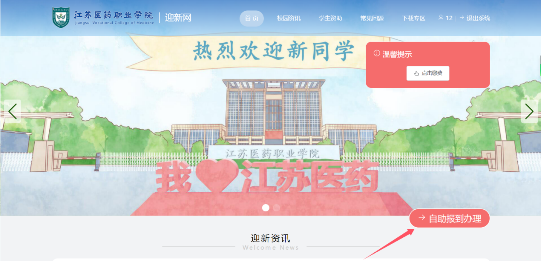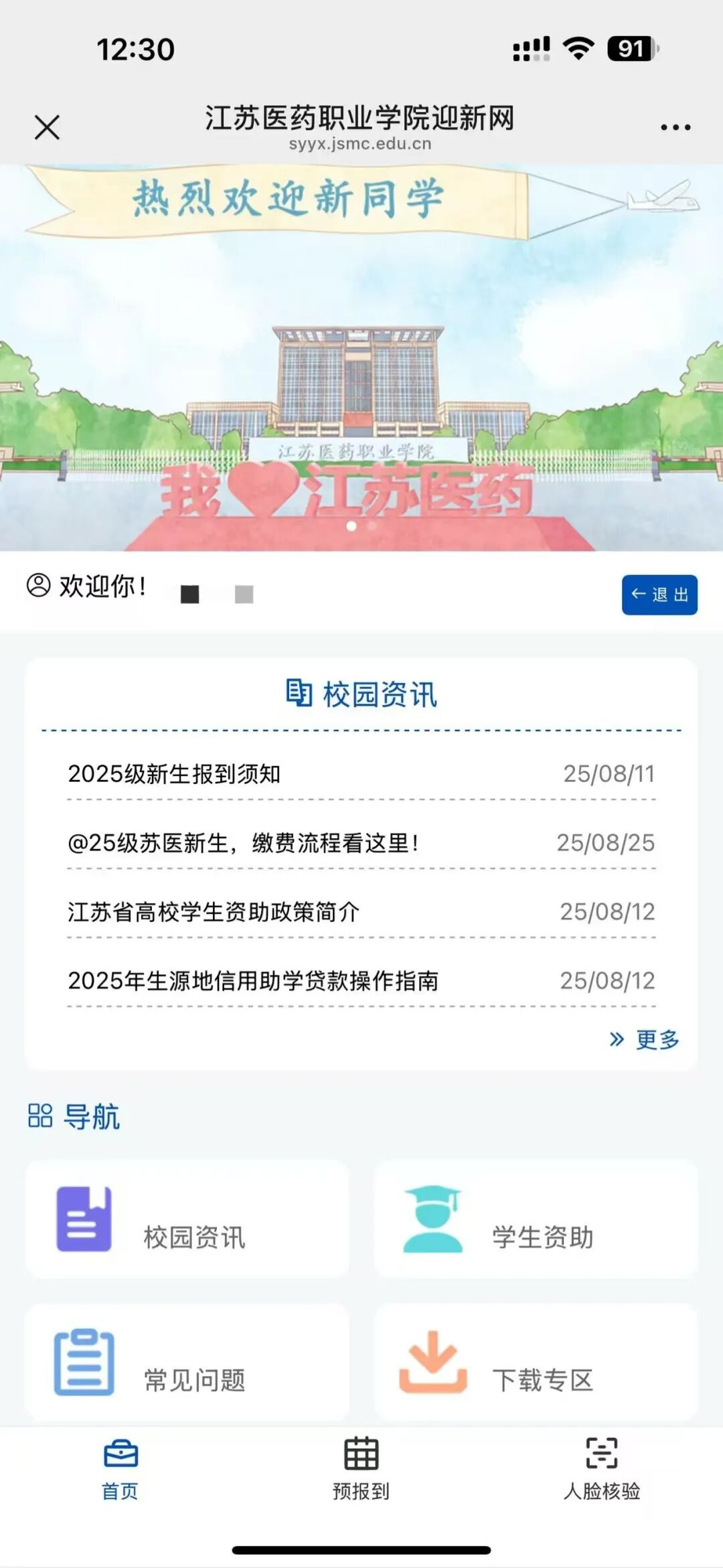 登录成功后进入迎新平台首页,可以通过首页查看相关资讯、通知。