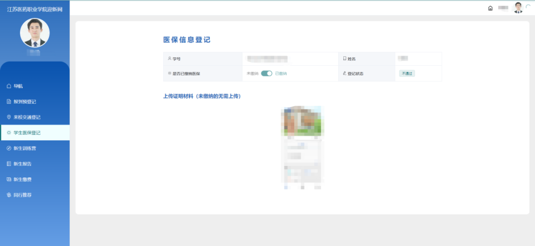 新生需要根据自己实际医保情况进行医保登记,“是否已缴纳医保”,同时需要上传相关证明材料(若未缴纳医保则无需上传),登记后,会有对应的辅导员进行审核。