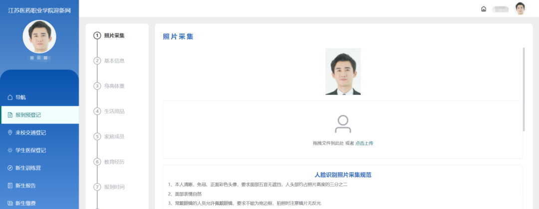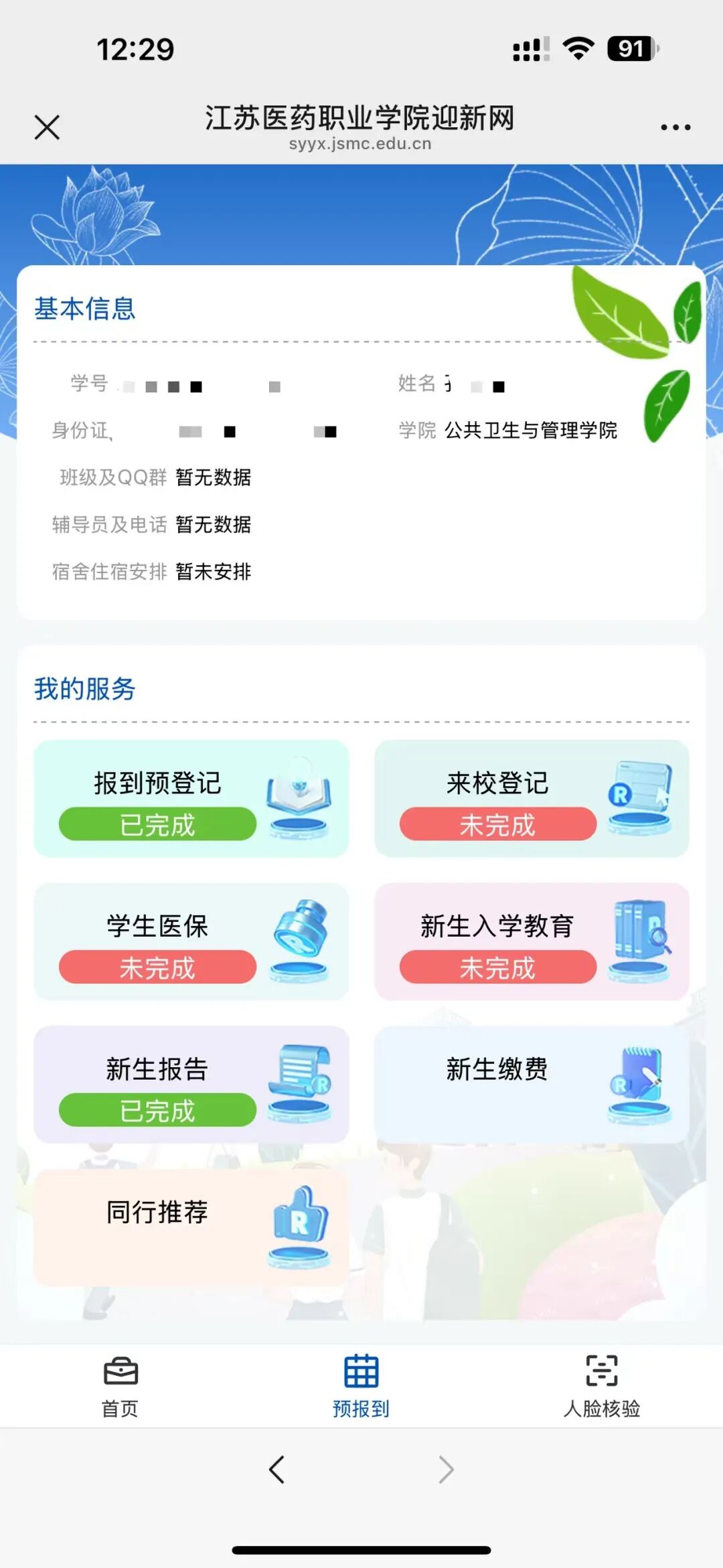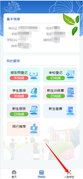 报到前请在移动端点击“人脸核验”,完成身份核验。