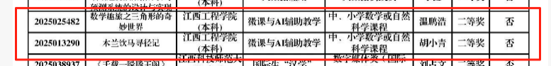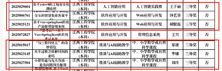 5月25日,2025年(第18届)中国大学生计算机设计大赛落下帷幕,在学校领导的高度重视下,电子信息工程学院院长邹小金积极动员协调参赛,在王景景、万里霞、方丽娟等老师的指导下,我校电子信息工程学院学子凭借扎实的专业知识和出色的创新能力,取得了优异成绩,分别荣获一等奖2项,二等奖2项,三等奖6项,其中2项一等奖作品直接晋级全国总决赛。