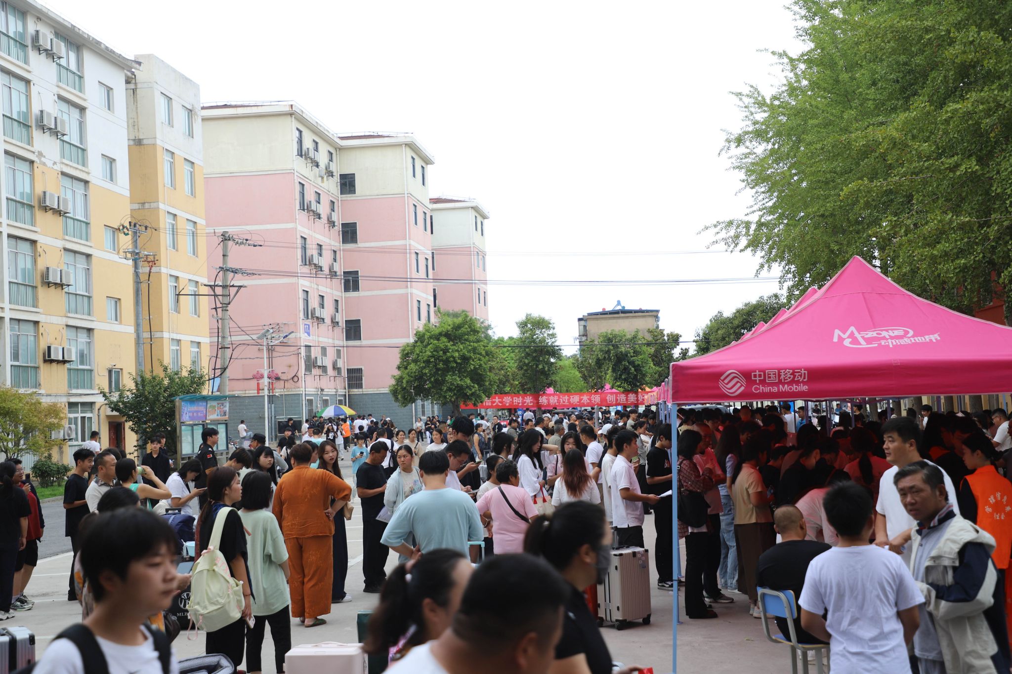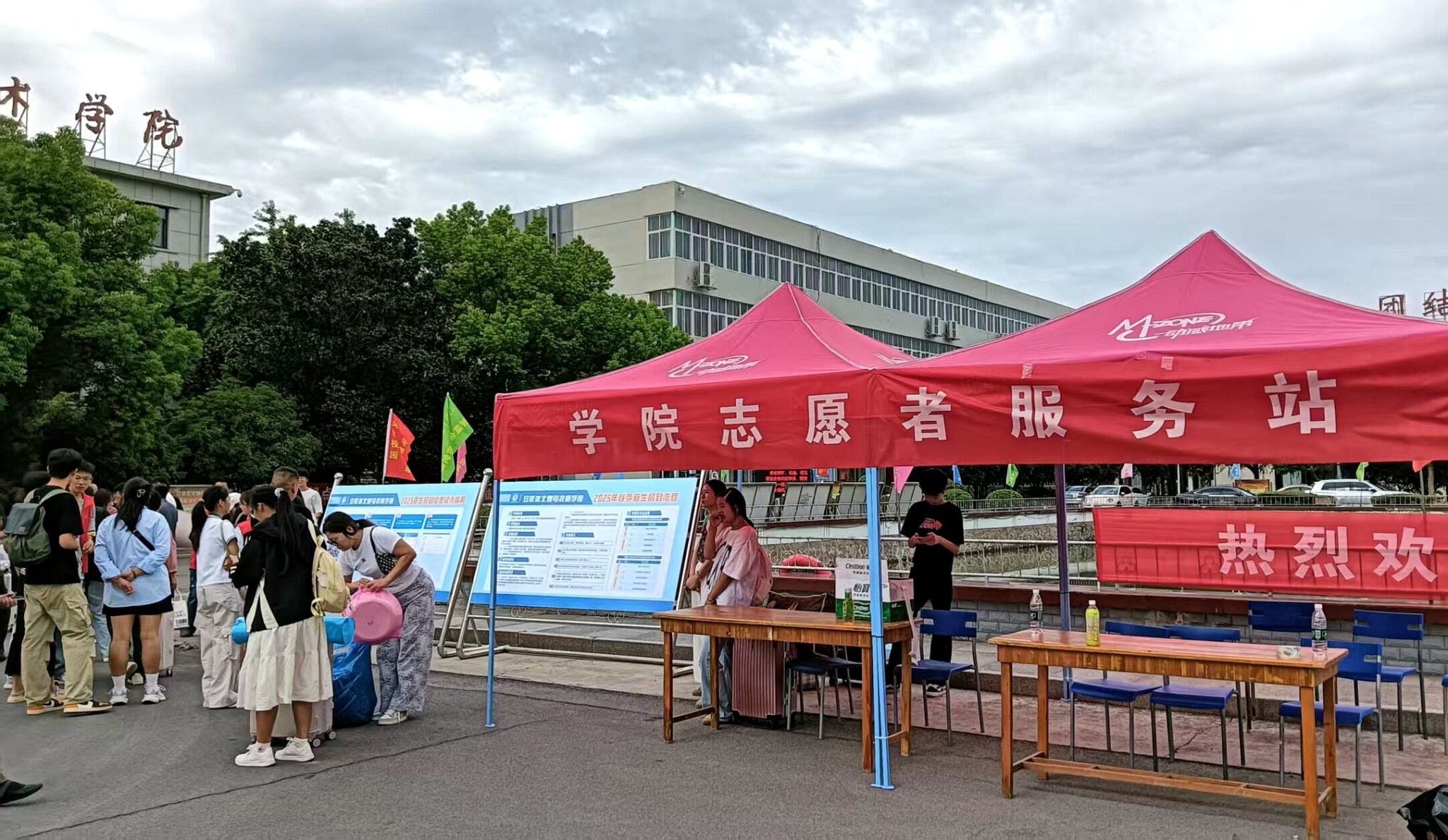 五彩文化旗迎风招展,“欢迎新同学”的条幅高高悬挂,各类指引展板整齐排列,整个校园沉浸在热烈而温馨的迎新氛围中。