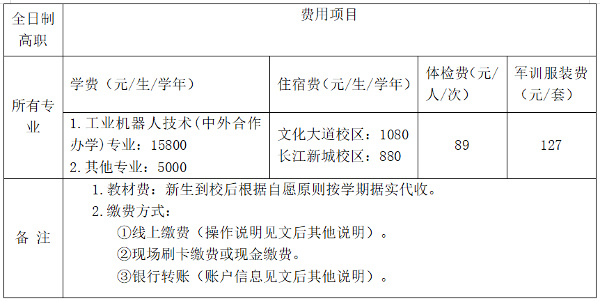 (八)学校实行按学年收费制度,收费款项在报到时一次性缴清,具体缴费方式以学校财务处正式通知为准。根据学校已公示的《长江工程职业技术学院2025-2026学年收费项目清单》:
